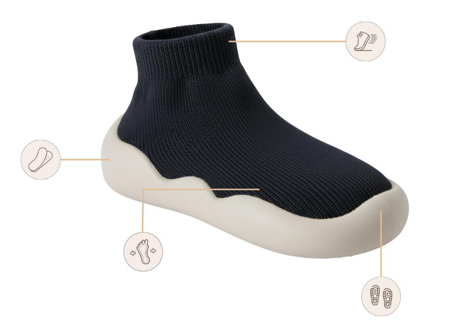 ¡Sí! El diseño tipo calcetín alto hace que sea mucho más difícil para las manitas agarrarlos y quitarlos, a diferencia de los zapatos tradicionales. Además, a diferencia de los zapatos rígidos que resultan incómodos, estos se sienten como sus calcetines favoritos, por lo que los niños en realidad no quieren quitárselos.